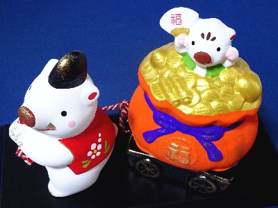招福亥 うり坊のせ宝車 屏風飾り